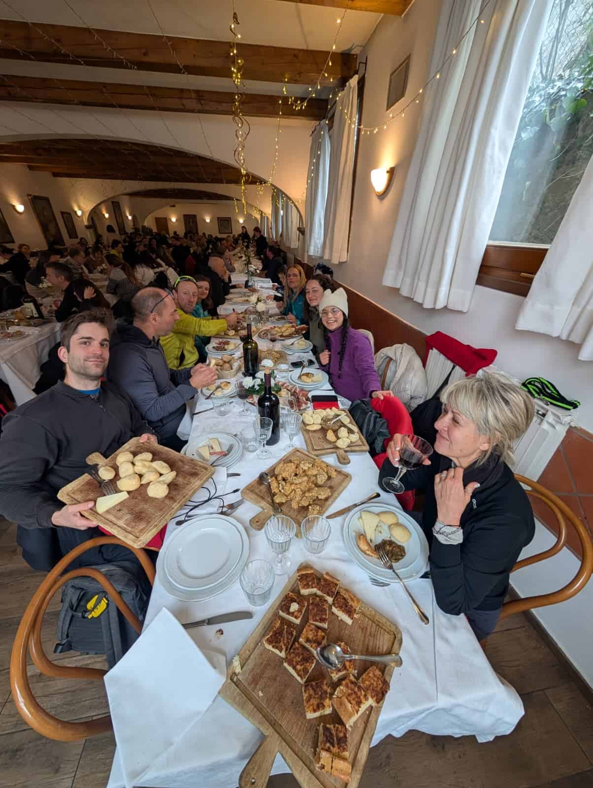 Al termine dell’escursione, posate le ciaspole, ci aspetterà un aperitivo di benvenuto presso il Casone con prosecco e snack. La Stanza Bianca del Caminetto, con il fuoco acceso, sarà riservata esclusivamente a noi. Il menù, che prevede opzioni per eventuali intolleranze da segnalare al momento della prenotazione, sarà il seguente: