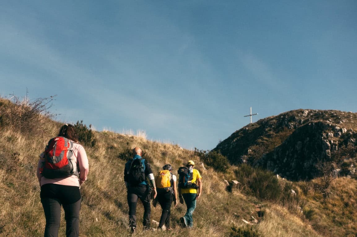 Arriviamo alla Focetta di San Vincenzo, un incrocio di sentieri. Ignoriamo le deviazioni e ci dirigiamo verso la Baita Verde, superando il rudere della chiesa di Sant’Antonio Abate. Continuando, troviamo un bivio e, senza cartelli, ci teniamo a destra per il monte Matanna.