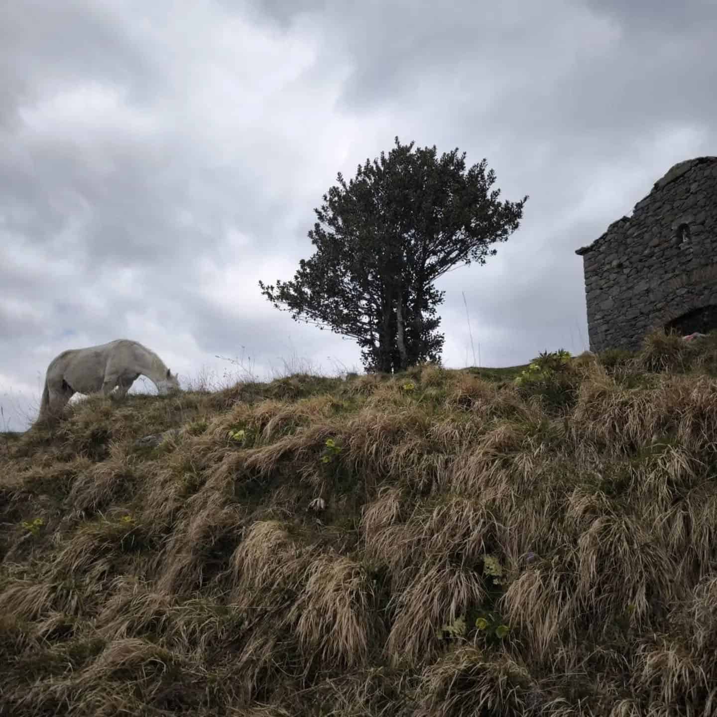 Arriviamo alla Focetta di San Vincenzo, un incrocio di sentieri. Ignoriamo le deviazioni e ci dirigiamo verso la Baita Verde, superando il rudere della chiesa di Sant’Antonio Abate. Continuando, troviamo un bivio e, senza cartelli, ci teniamo a destra per il monte Matanna.