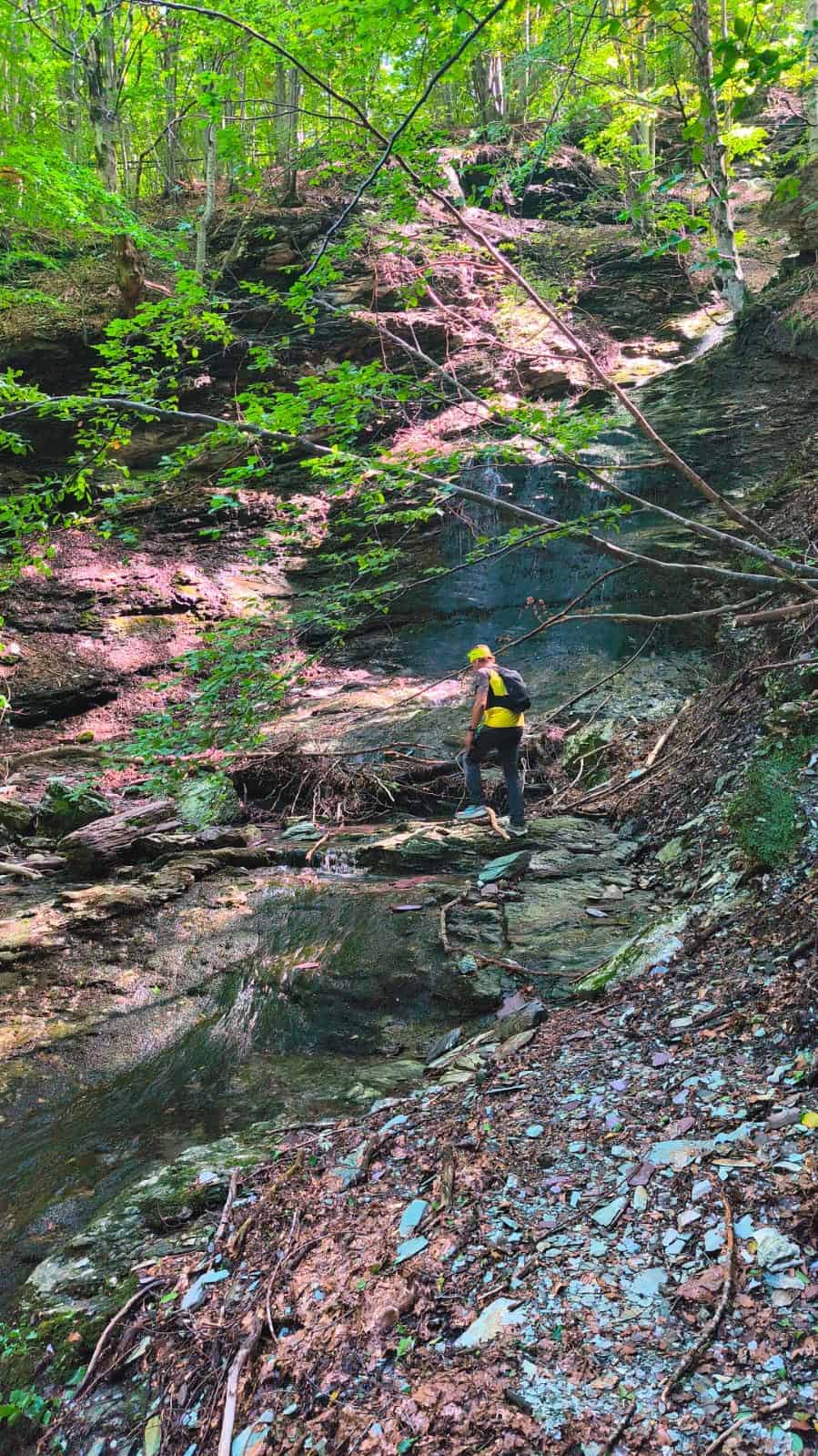 Scenderemo nella valle di Arnetola lungo la famosissima via Vandelli che lasceremo per dirigerci in direzione passo Sella, e dopo una faticosa discesa lungo la strada marmifera raggiungeremo la valle di Arni che percorreremo fino a incrociare il sentiero presso la località tre fiumi che ci collegherà al rifugio Robbio dell’amico Mauro Tavoni, dove ci fermeremo a rifocillarsi e riprendere le forze prima di affrontare l'ultimo tratto del percorso. Il nostro viaggio prosegue poi lungo i sentieri che costeggiano il Corchia, la Pania, il Monte Forato e il monte Nona, finalmente raggiungeremo la foce del Pallone e non ci resterà che scendere verso il paese di Casoli, dove si conclude la traversata.