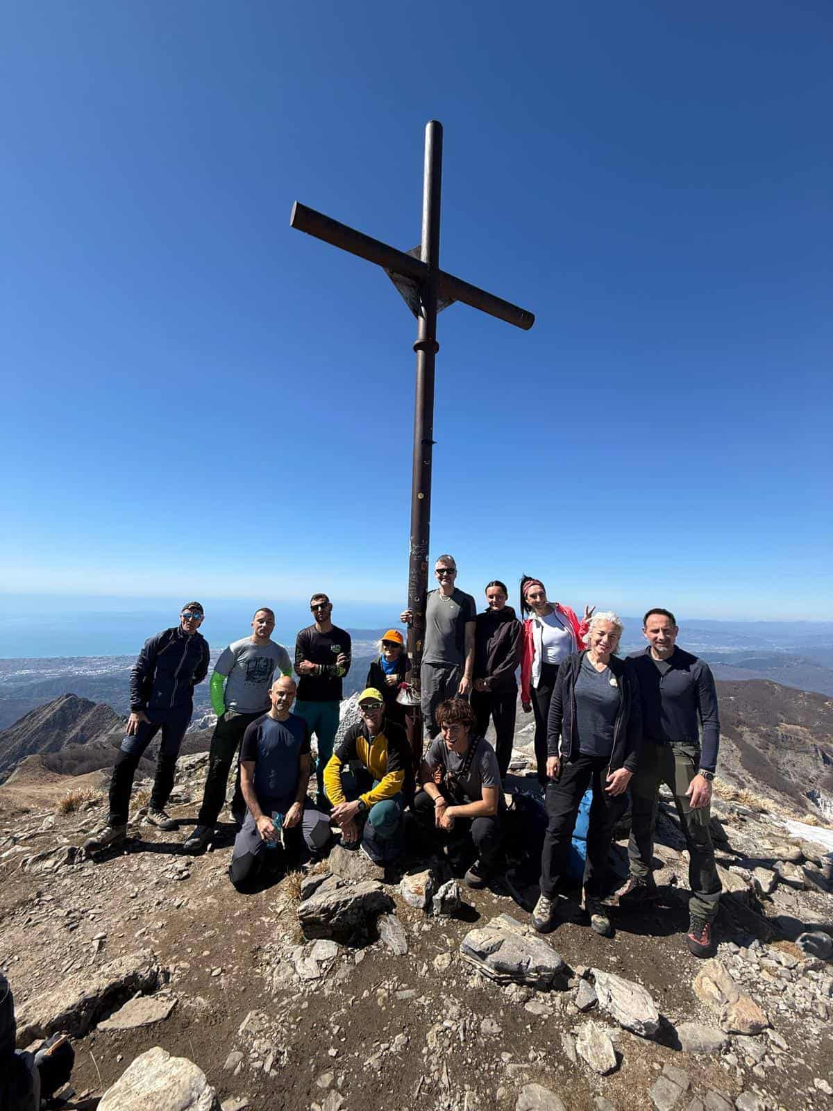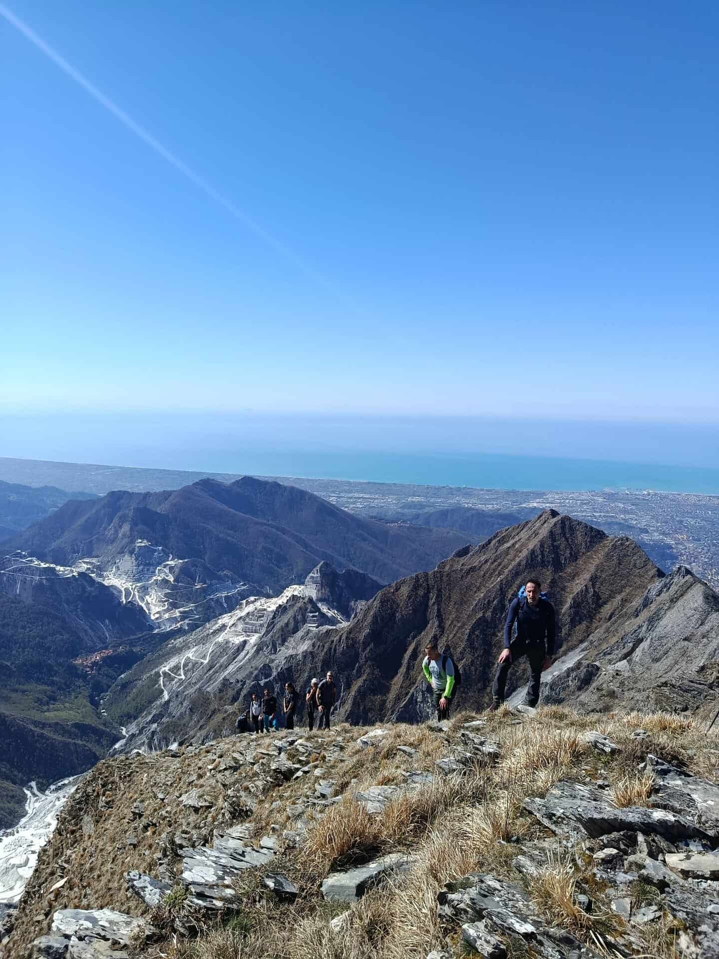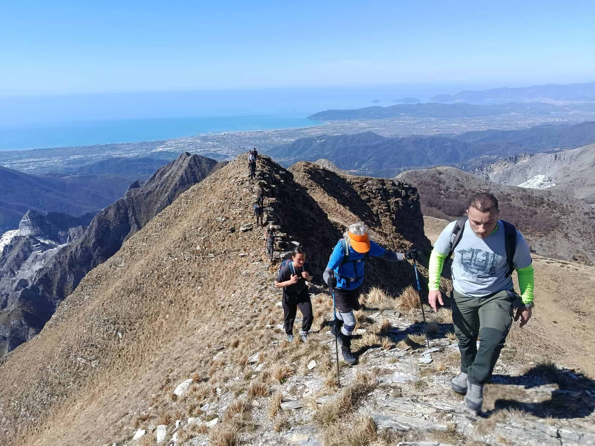 Sempre per cresta guadagneremo la cima del monte Sagro e successivamente con percorso ad anello torneremo alla foce di Pianza e da lì a Campocecina per il solito percorso dell'andata. L'escursione richiede la totale assenza di vertigini e passo sicuro nella progressione.