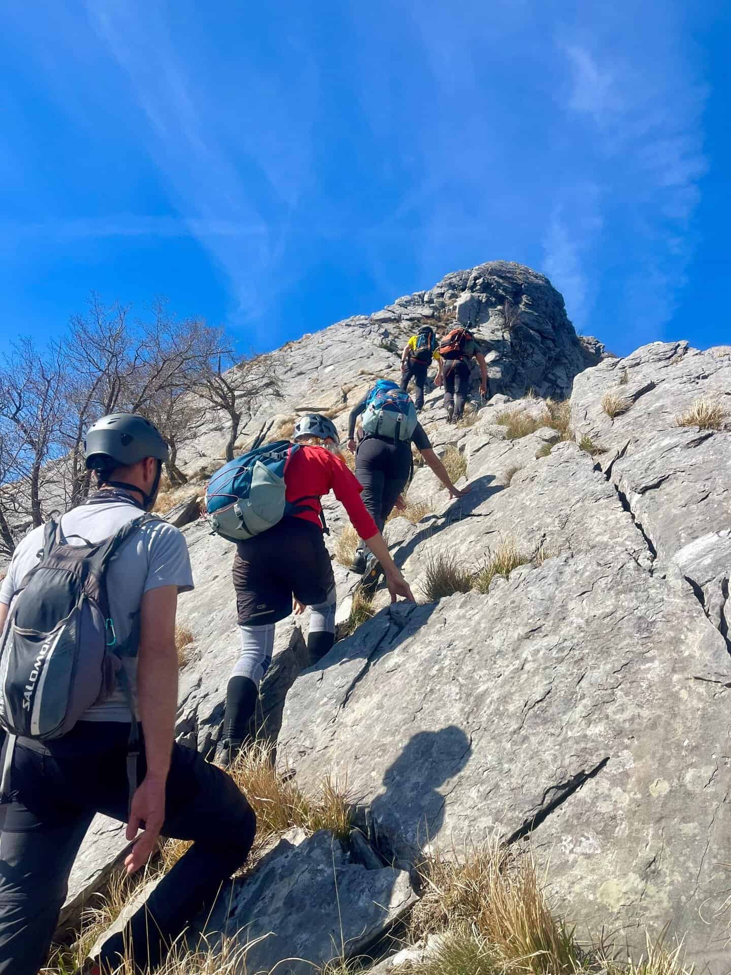 La scalata comporta attraversare passaggi di primo grado su lastre di roccia con un buon grip, che offrono numerosi punti di presa. Il tratto maggiormente esposto si trova tra la Cima a quota 1340 e il Monte Freddone.