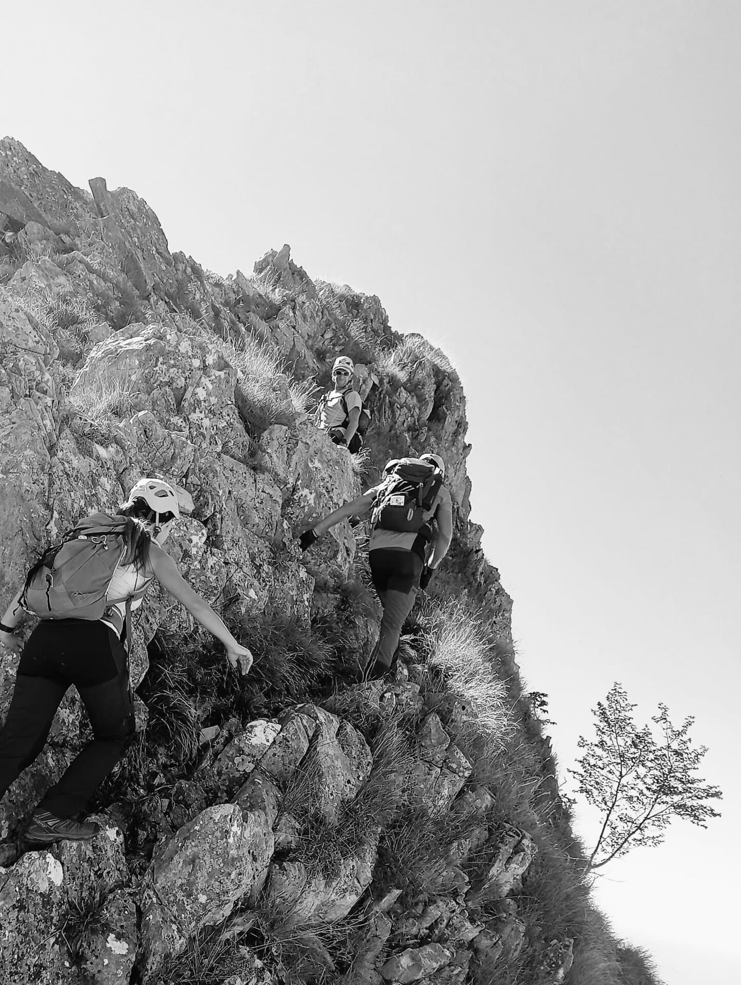 Dopo aver superato la cresta, inizieremo la salita sul lato sinistro del filo di cresta, zigzagando e mantenendo lo sguardo avanti.